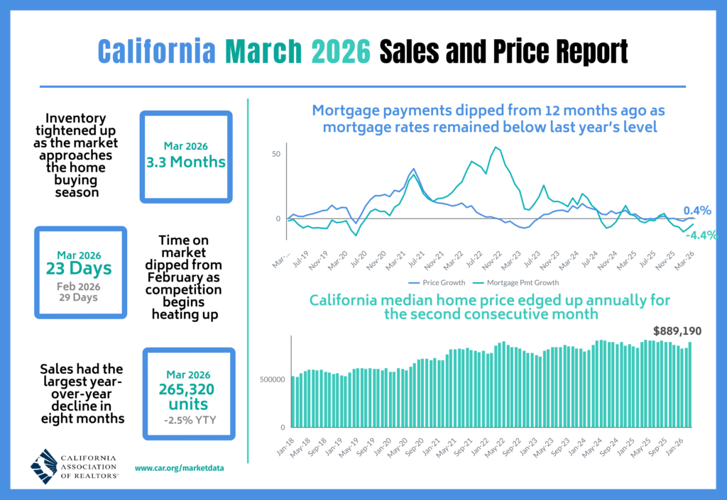 2026 March Home Sales and Price Report March 17, 2026 by Jessica Esparza Read more here: https://www.car.org/aboutus/mediacenter/newsreleases/2026releases/march2026sales Share on Facebook