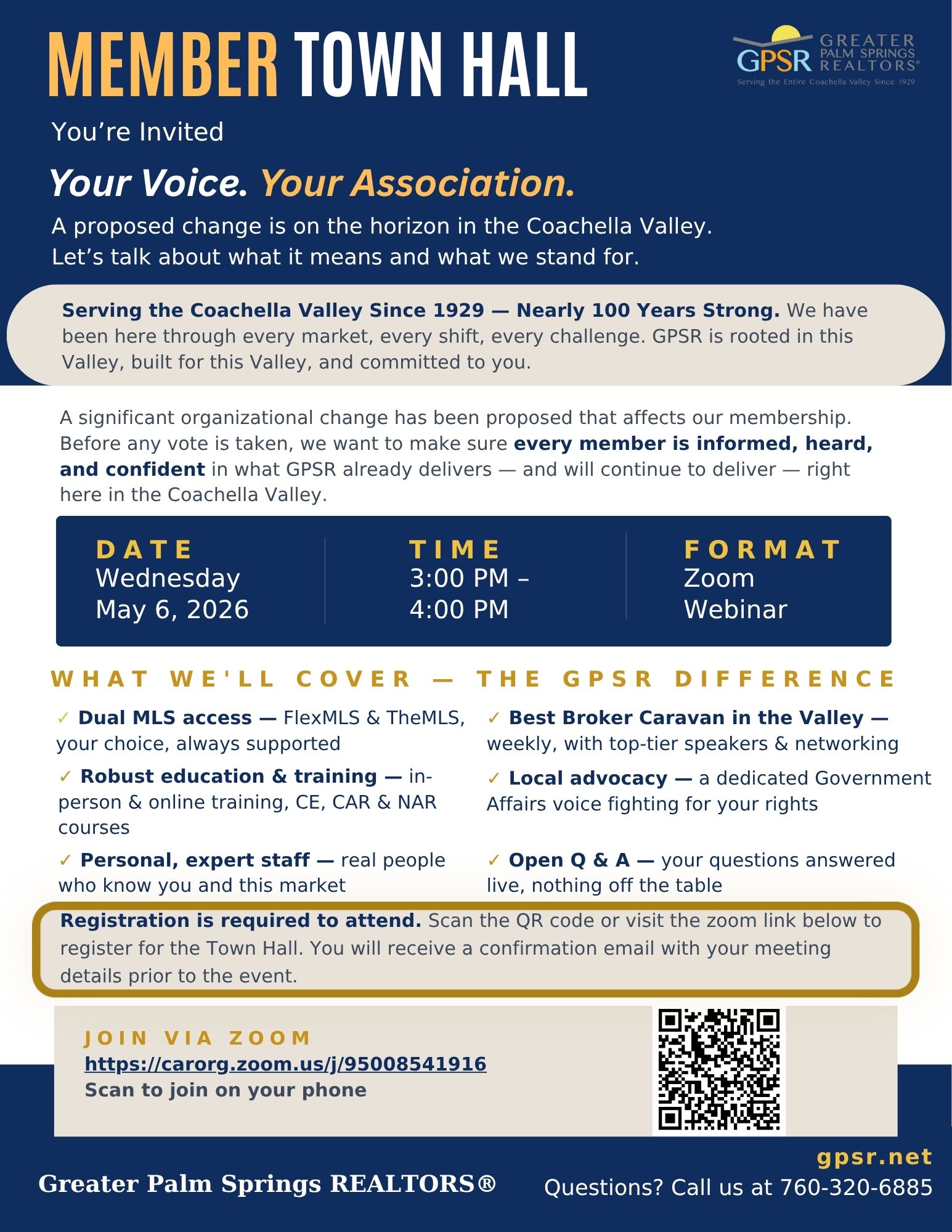News and Events Upcoming events, classes and trainings from Greater Palm Springs REALTORS®. For more info, contact 760-320-6885 or click on the event. GET MORE INFO Add Your Listing To The GPSR Broker Caravan Tour! GET MORE INFO Realtor® Night at the Ballpark GET MORE INFO The RAW Group – Next Meeting Date, May 21st! GET MORE INFO GPSR Broker Caravan GET MORE INFO QR Caravan Code GET MORE INFO Desert Hot Springs Caravan – May 5th! GET MORE INFO Caravan Update GET MORE INFO Desert Housing Report for March 2026 GET MORE INFO Supra eKey® System Upgrade Recorded Training! GET MORE INFO March 10th Update: Click Here for GPSR Government Affairs